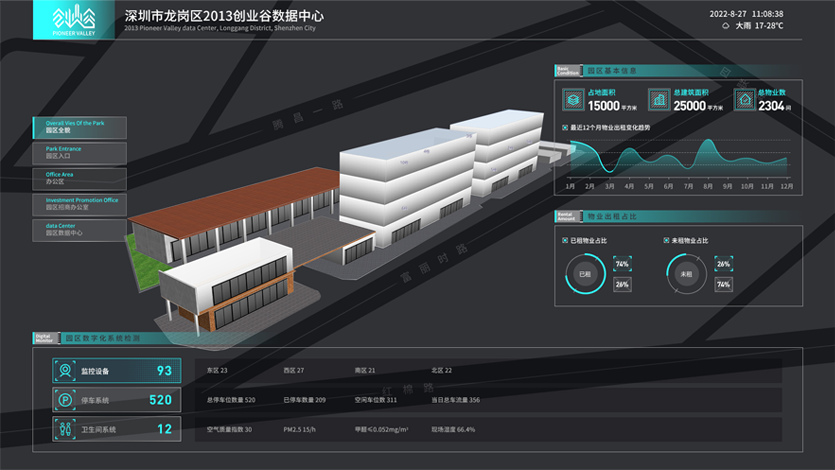 用户可以关联自己的业务数据,将数据展示与室内外空间结构、设施布点、位置信息进行互动展示、分类展示,把无序的数据与有序的结构化空间对应。